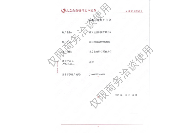 戴工建設(shè)集團有限公司,創(chuàng)建于2009年,注冊資本9888萬元人民幣。公司位于北京市大興區(qū)。具有建委頒發(fā)的建筑裝飾裝修專業(yè)壹級,防水保溫工程專業(yè)壹級,建筑幕墻專業(yè)貳級,消防設(shè)施專業(yè)貳級,電子與智能化專業(yè)貳級,特種工程(結(jié)構(gòu)補強)專業(yè)不分等級,建筑機電安裝專業(yè)貳級,環(huán)保工程專業(yè)貳級,鋼結(jié)構(gòu)專業(yè)貳級,建筑工程總承包貳級,建筑裝飾工程設(shè)計專項甲級,展覽陳列工程設(shè)計與施工壹級,展覽展示工程壹級...更多>>